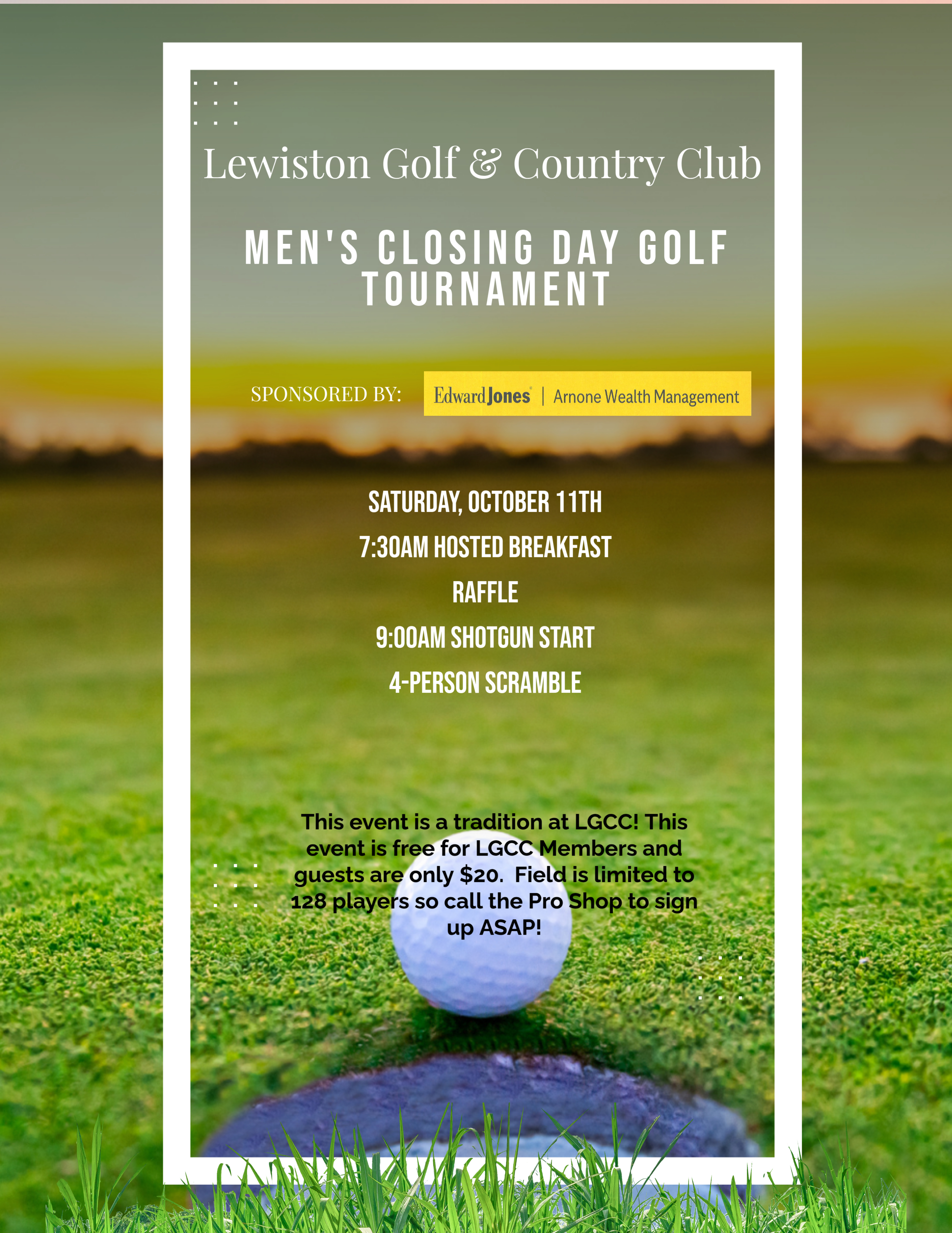 NOTE: Many of our tournaments are a partial day and tee times are available for members before, during or after the event. Also many have a social so you can join in the fun even if you don't want to golf.